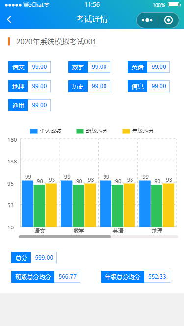 用戶(hù)查看指定考試各學(xué)科成績(jī)