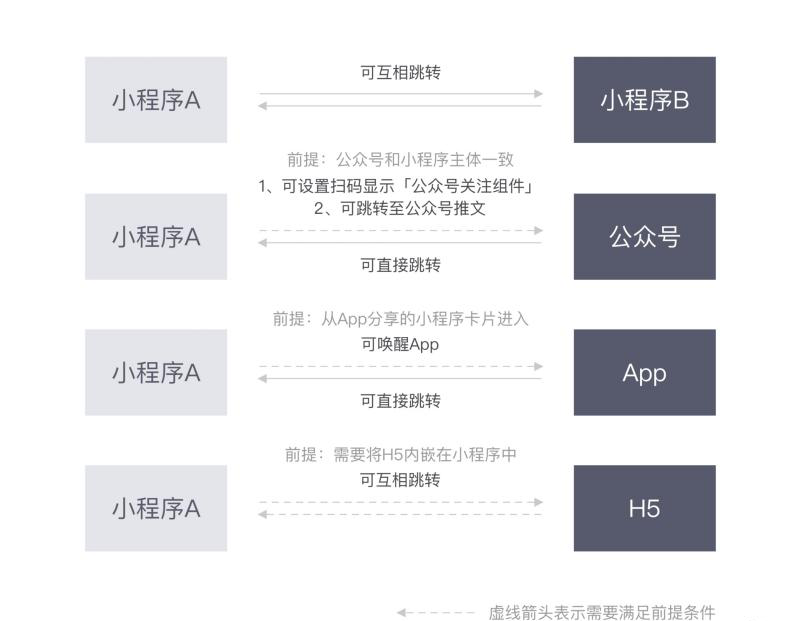 小程序能夠很好地做到用戶與服務(wù)的終端融合,被便捷地獲取和傳播,它除了能夠粘合線上與線下,用戶與服務(wù)以外,還能夠在整個(gè)線上生態(tài)中做到相互連接。不僅能夠跳轉(zhuǎn)其它小程序,還能夠在小程序和APP之間實(shí)現(xiàn)相互跳轉(zhuǎn)。另外,小程序入口多達(dá)七十多個(gè),真正做到了去中心化,入口眾多,場(chǎng)景豐富。開發(fā)者可以根據(jù)不同的場(chǎng)景來定制不同的服務(wù)。