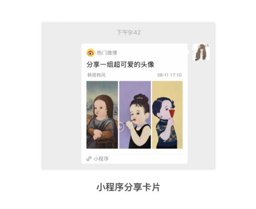 與APP和H5相比,小程序有著天然的鏈接優(yōu)勢(shì)。不論是分享轉(zhuǎn)發(fā),還是客服物流,微信小程序都能夠做到無縫鏈接。小程序根植于中國最大的社交平臺(tái),能夠自由應(yīng)用微信為其提供的多重基礎(chǔ)功能。同時(shí),小程序的分享不是靜態(tài)的鏈接,而是自帶動(dòng)態(tài)數(shù)據(jù)的卡片,信息在分享鏈接中就能夠一覽無余。被分享的用戶可以直接看到重要信息。